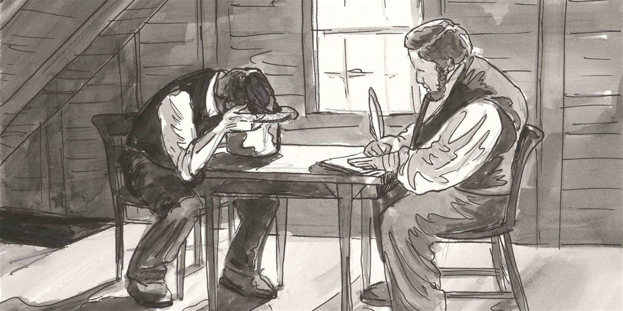 ... cuando ejercía de escribiente, tu padre me dictaba hora tras hora; y cuando volvía después de comer, o tras interrupciones, empezaba inmediatamente donde lo había dejado, sin ver el manuscrito ni que le leyeran parte alguna. Esto era algo habitual en él1.